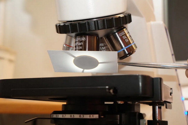簡易暗場觀察只需在阿貝聚光鏡基礎(chǔ)上加入暗場環(huán)即可實現(xiàn),這個暗場環(huán)通常安裝于聚光鏡底部,用推拉插板或者32mm濾光片托架安裝都可以,一般簡易暗場到N.A0.6效果都還行。也就是說最高搭配Plan 40X或者Plan Fluo 20X物鏡,更高N.A的物鏡可能需要在聚光鏡和玻片底部之間滴油來提升照明N.A.