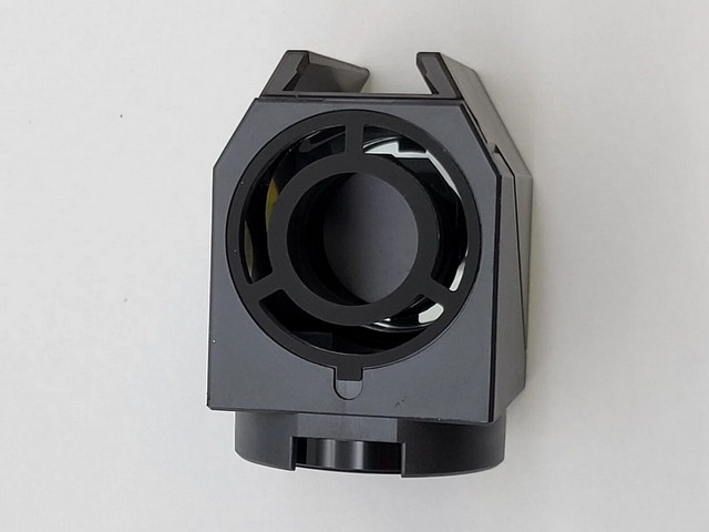 反射暗場必須搭配金相明暗場物鏡。金相明暗場物鏡要比普通物鏡粗很多,因為在金相反射暗場中,暗場照明光線并不通過物鏡聚焦到樣品上,物鏡主體以外要留出一圈空間給暗場照明的光通過,另外物鏡前端可以看到外殼是明顯向前端延申的,以讓暗場照明光傾斜反射到樣品上,在到達前端反射前,會有一圈環(huán)形的透鏡或棱鏡對光線進行調(diào)整。