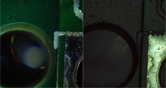 在金相領(lǐng)域,暗場觀察通常搭配明場觀察使用,來呈現(xiàn)明場觀察下無法發(fā)現(xiàn)的氣孔、凸起、劃痕、灰塵等瑕疵,比如檢查芯片焊點等芯片檢查工作。