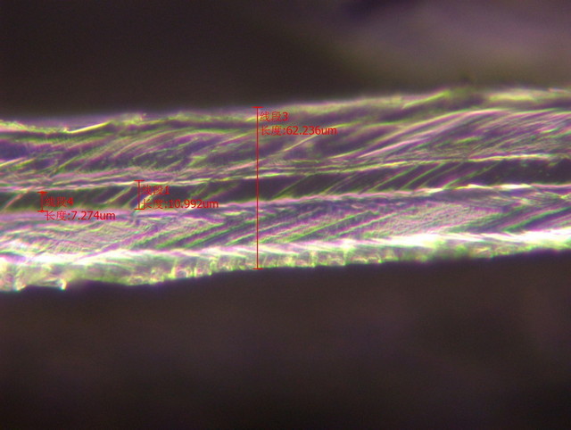 在一些孔隙率差異或折射率梯度的聚合物和陶瓷薄片,比如薄膜、光纖中,使用明場觀察會有邊緣模糊的問題,導(dǎo)致尺寸測量存在不準確的問題,使用暗場觀察可以更準確呈現(xiàn)邊緣,使尺寸測量更加準確。