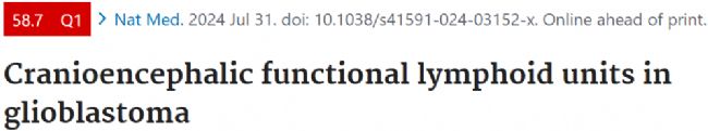 頂刊文獻二:膠質(zhì)母細胞瘤中的顱腦功能性淋巴單位