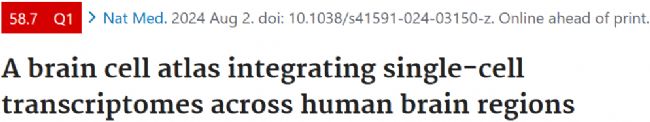 頂刊文獻三:整合人類大腦區(qū)域單細胞轉(zhuǎn)錄組的腦細胞圖譜