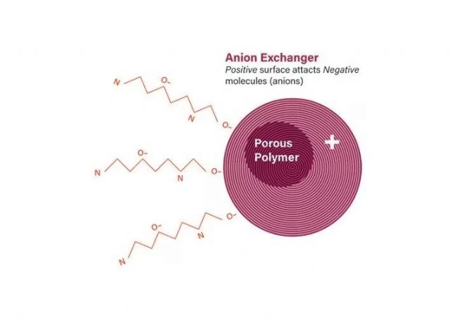 離子交換色譜從很早開始就被用于蛋白質及其他生物制劑的分離。由于組成肽的氨基酸帶有正電或負電,因此可采用離子交換色譜進行肽分離。經過官能化的天然聚合物樹脂(如瓊脂糖)和合成聚合物(如聚甲基丙烯酸甲酯(MMA),或苯乙烯-二乙烯苯共聚物)是大分子分離的常用介質,因為這些填料可承受大規模生物處理的工藝周期和批次之間極為嚴苛的清潔處理。上述工藝采用的氫氧化鈉溶液會損壞小分子和小規模肽分離常用的硅膠基質填料。