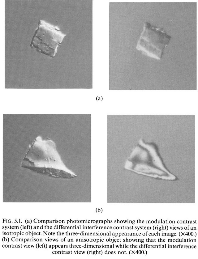 ④Hoffman, R. (1989). Modulation Contrast and Differential Interference Contrast Techniques. In: Hemsley, D.A. (eds) Applied Polymer Light Microscopy. Springer, Dordrecht. https://doi.org/10.1007/978-94-011-7474-9_5