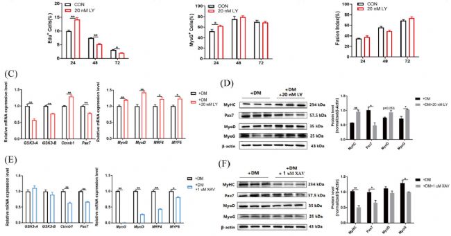 8. 3.8. GSK3抑制劑LY2090314激活Wnt/β-catenin信號(hào)通路增強(qiáng)FAPs在體外共培養(yǎng)系統(tǒng)中刺激MuSCs成肌的能力