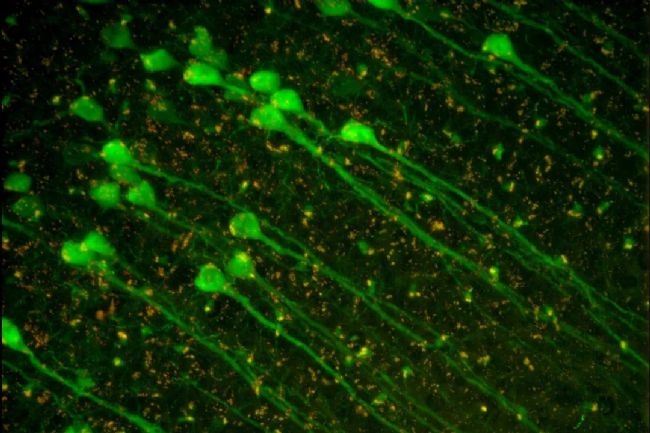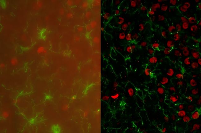 紅色 - AMPK,綠色 - Iba1。圖片由美國德克薩斯農工大學的 Maheedhar Kodali 和 Ashok K. Shetty 提供