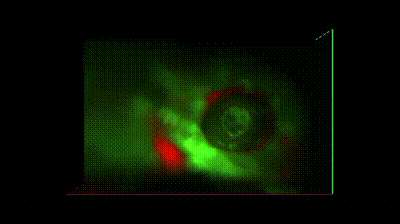 RAW 延時攝影 - 在涂有明膠的 1.5 號蓋玻片上對培養一周的腹主動脈外植體成像 48 小時。小鼠的基因被編碼為平滑肌細胞特異性tttomato。轉錄事件發生后,平滑肌細胞切除tttomato,并開始表達 eGFP。圖片由美國夏洛茨維爾弗吉尼亞大學 Laura S. Shankman 博士提供。
