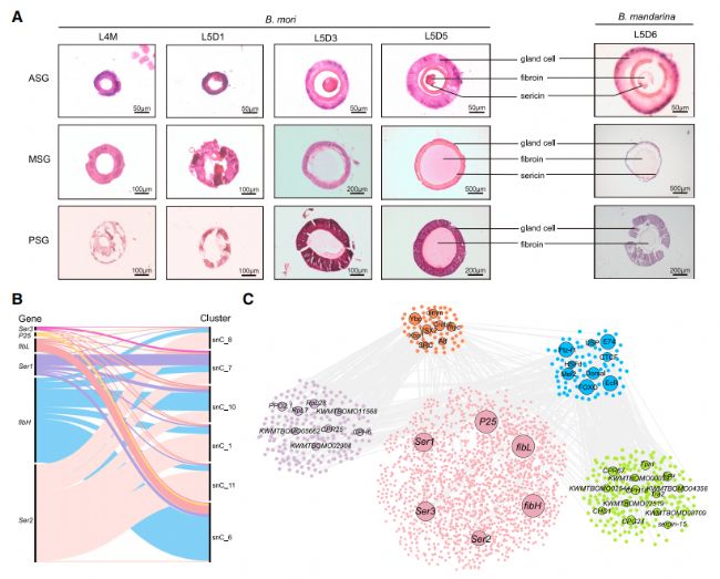 研究者識別了687個轉錄因子(TFs),其中177個在細胞類型特異性或普遍性表達中較高水平。通過差異表達轉錄因子(DETFs)分析,發現TFs在每個發育階段對絲蛋白基因的調控具有明顯的時間差異。