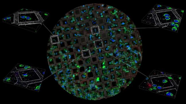 為進入細胞樣品以成功實現FIB切片并在冷凍TEM中開展后續分析,必須確保相關細胞位于網格方格的中心位置或其附近。但細胞喜歡在網格條上生長或者集簇生長,因此不適合進行FIB切片和電子透射分析。為了克服這一挑戰,微型圖案技術允許用戶控制細胞在碳膜(圖2)上的位置和分布,提高相關工作流程的可靠性。