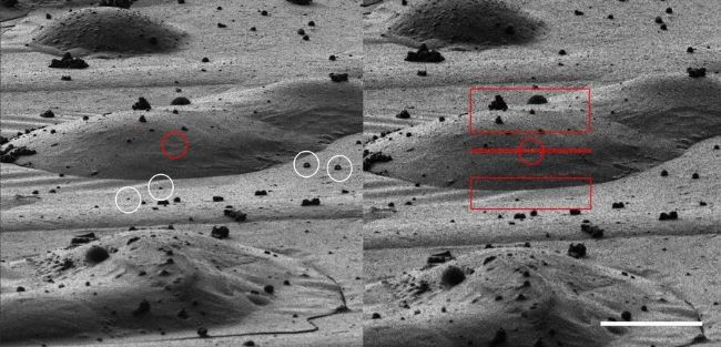 圖10:定位切片窗口左:離子束細胞圖像,含有標記液滴和目標結構根據目標結構的計算位置,在所用FIB-SEM的切片軟件中,交互定位上下切片窗口的位置(細薄條紋上方和下方的紅色方塊)。圖像由德國海德堡歐洲分子生物學實驗室(EMBL)Mahamid Group的Herman K. H. Fung友情提供。比例尺:20微米。