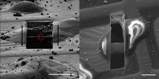 圖12:目標薄片的離子束圖像以及SEM俯視圖圖像由德國海德堡歐洲分子生物學實驗室(EMBL)Mahamid Group的Herman K. H. Fung友情提供。比例尺:10微米。
