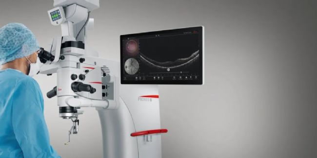 Nikolaos Bechrakis 教授將 Proveo 8 顯微鏡與 EnFocus 術中 OCT 成像系統配合使用,增強了可視化效果,有助于揭示隱藏的表面下細節,從而提高洞察力和精確度(圖 1)。這種配置還節省了手術室的空間。