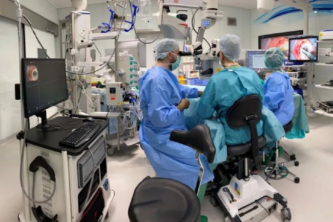 圖 1:Nikolaos Bechrakis 教授使用帶有 EnFocus 術中 OCT 的 Proveo 8 顯微鏡。圖片由 Nikolaos Bechrakis 教授提供。