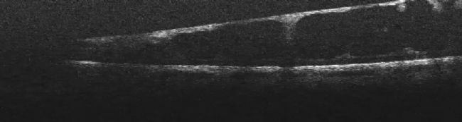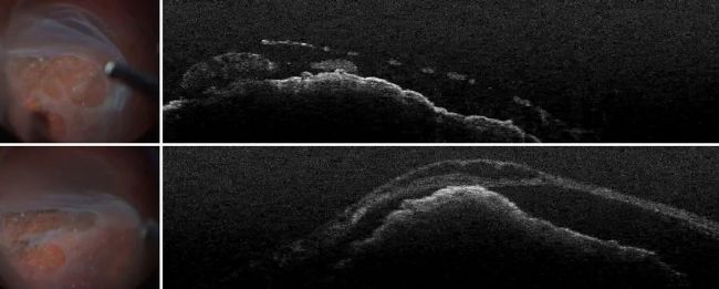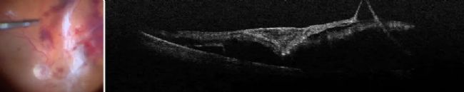 圖 5:術中 OCT 使白色小葉清晰可見,證實腫瘤沒有復發。圖片由 Nikolaos Bechrakis 教授提供。