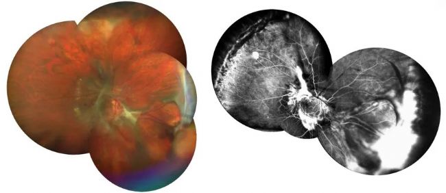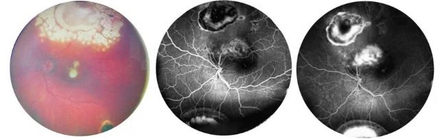 在這個疑難病例中,患兒曾患有視網膜母細胞瘤,幾年前曾接受過治療(圖 4)。問題是腫瘤是否在黃斑中心凹處復發,還是另有原因。