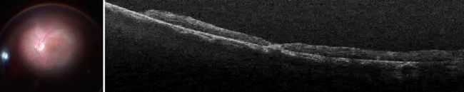在這個病例中,一名兒童需要全身麻醉來檢查眼睛。OCT 對確診視網膜裂孔癥特別有幫助。