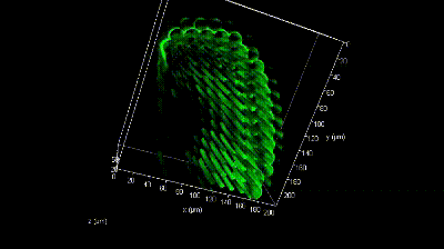 纖維被熒光素標(biāo)記。目的是研究動態(tài)和孔隙。55 幅圖像的 Z 疊(130 微米)。圖片由美國德克薩斯州休斯頓萊斯大學(xué)生物工程系 Mollie Smoak 提供