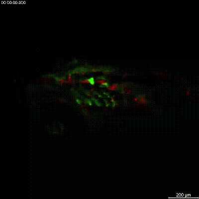 斑馬魚胚胎 6 dpf,HPCs 穩(wěn)定表達(dá) mCherry,VEC 穩(wěn)定表達(dá) GFP。