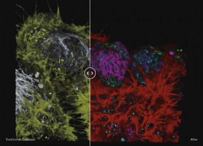 熒光壽命:傳統熒光成像受限于熒光類型和光譜范圍,而STELLARIS共聚焦平臺可升級熒光壽命技術,通過記錄分子在激發態停留的平均時間,來區分微環境中不同的組成部分。熒光壽命與熒光物質的自身結構和所處的微環境(如極性、粘度等)有關,而與激發光強度、熒光團濃度等因素無關,是一種非常好的技術來探究腫瘤微環境中的pH值、離子濃度等。通過結合熒光壽命的維度,幫助科研工作者產生更多的新洞見。