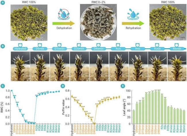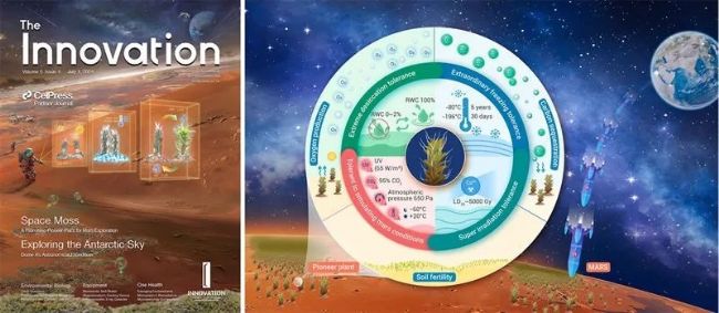 在探索宇宙的征途中,人類對于在其他星球建立定居點的構想愈發具體。這些宏偉計劃往往聚焦于如何使農作物適應受控的人工環境,以確保食物供應的自給自足。然而,除了人工環境,我們同樣需要考慮如何在火星等外星環境的惡劣土壤中培育出能夠茁壯生長的先鋒植物。中科院新疆生地所研究員張道遠和張元明團隊聚焦于沙漠苔蘚——齒肋赤蘚(Syntrichia caninervis),揭示齒肋赤蘚的生存極限與適應策略。研究發現,齒肋赤蘚能夠耐受自身98%以上的細胞脫水、-196℃超低溫速凍、5000 Gy以上伽馬射線輻射而不死,且在火星模擬條件下仍可以存活并再生出新的植株。這一成果刷新了極端生命體對環境的“耐受”紀錄。相關成果于7月1日以封面文章的形式發表在The Innovation,標題為The extremotolerant desert moss Syntrichia caninervis is a promising pioneer plant for colonizing extraterrestrial environments。