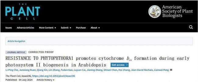 6. Che L P, Ruan J, Xin Q, et al. RESISTANCE TO PHYTOPHTHORA1 promotes cytochrome b559 formation during early photosystem II biogenesis in Arabidopsis[J]. The Plant Cell, 2024: koae196.