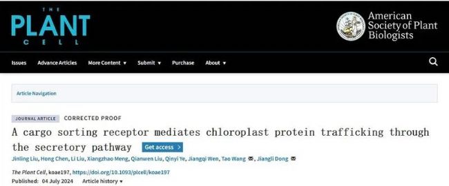 7. Liu J, Chen H, Liu L, et al. A cargo sorting receptor mediates chloroplast protein trafficking through the secretory pathway[J]. The Plant Cell, 2024: koae197.