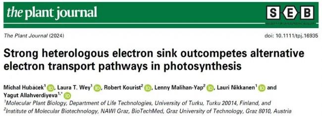 9. Hubáček M, Wey L T, Kourist R, et al. Strong heterologous electron sink outcompetes alternative electron transport pathways in photosynthesis[J]. The Plant Journal, 2024.
