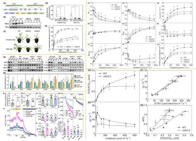 研究團隊首先使用CRISPR/Cas9基因編輯技術在狗尾草(Setaria viridis)中創建了ndhO的突變體。這些狗尾草突變體具有缺乏功能性NDH的ndhO等位基因,并開發了量化BS和葉肉細胞中通過NDH的電子流的方法。相關結果表明,CEF占BS細胞中PSI還原電子的84%,其中大部分電子通過NDH傳遞,而葉肉細胞中該復合體對電子傳遞的貢獻微乎其微。缺乏NDH的植物葉片CO2同化率和生長速度下降,無法通過提供額外的CO2來挽救。此外,NDH介導的CEF是BS葉綠體中主要的電子傳遞途徑,這凸顯了NDH在BS細胞中產生C3循環固定CO2所需的ATP方面的重要作用。
