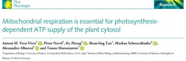 11. Vera‐Vives A M, Novel P, Zheng K, et al. Mitochondrial respiration is essential for photosynthesis‐dependent ATP supply of the plant cytosol[J]. New Phytologist, 2024.