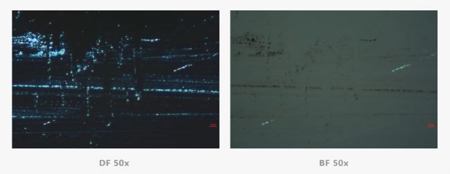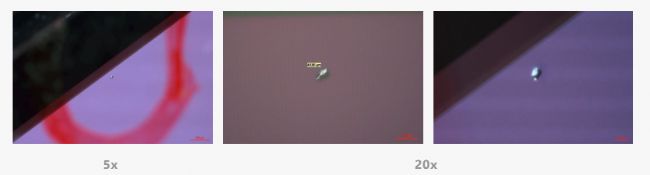 光學顯微鏡在面板檢測行業的應用主要體現在對面板上缺陷的識別和分析,例如:判斷表面是否有異物、劃傷、異色、凸包、凹痕、針孔、毛邊、異常亮點、異常暗點等缺陷檢測。