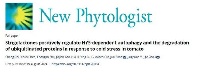 隨著全球氣候變暖,極端天氣增加,植物經(jīng)常會面臨各種各樣的脅迫,嚴重影響其生長發(fā)育。低溫是一種主要脅迫,限制了許多作物的品質(zhì)和產(chǎn)量。而番茄作為一種喜溫性蔬菜,低溫會導(dǎo)致其生長發(fā)育停滯,花期延遲,坐果率顯著降低。在整個進化過程中,植物已經(jīng)發(fā)展出多種抵御寒冷的機制,其中植物激素調(diào)節(jié)起著至關(guān)重要的作用。同時,自噬參與蛋白質(zhì)降解和氨基酸循環(huán),在植物發(fā)育和逆境反應(yīng)中起著關(guān)鍵作用。然而,自噬與植物激素之間的關(guān)系尚不清楚。2024年8月19日,New Phytologist在線發(fā)表浙江大學(xué)周杰教授和北京大學(xué)現(xiàn)代農(nóng)業(yè)研究院趙珺博士聯(lián)合署名標(biāo)題為Strigolactones positively regulate HY5-dependent autophagy and the degradation of ubiquitinated proteins in response to cold stress in tomato的研究論文。