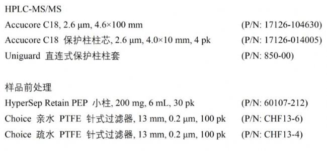 HPLC-MS/MS Accucore C18, 2.6 μm, 4.6×100 mm