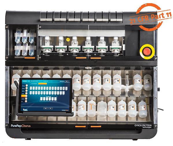 Gyros Protein Technologies以其在全自動固相多肽合成儀領域的長期卓越表現而聞名。這些儀器的核心是 PurePep Pathway技術,這是一種流路閥塊系統,可在惰性氣體環境下將液體從溶劑/試劑瓶移動到反應容器中。由于寡核苷酸合成也需要惰性環境條件,我們著手使用模塊化 PurePep Chorus 合成儀將化學合成范圍從肽擴展到寡核苷酸。