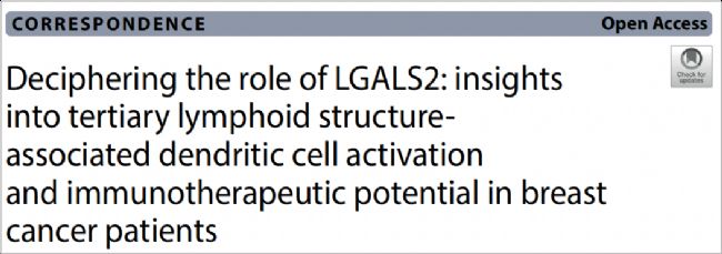 文章標題:Deciphering the role of LGALS2: insights into tertiary lymphoid structure-associated dendritic cell activation and immunotherapeutic potential in breast cancer patients