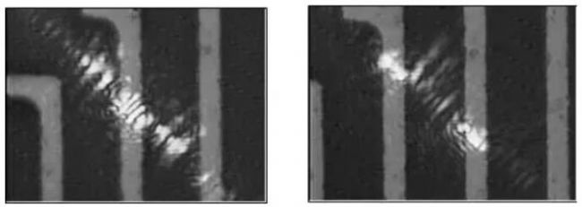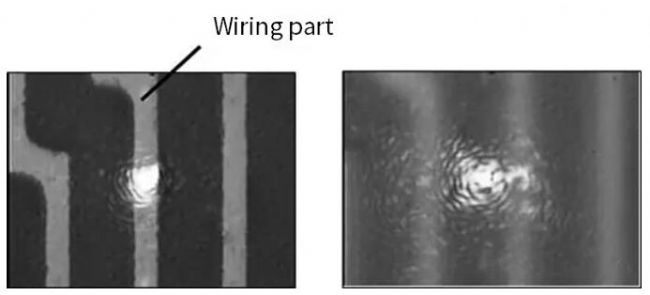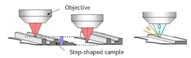 圖2. 半導(dǎo)體樣本聚焦不穩(wěn)定的原因:(左)焦點(diǎn)位置的變化和(右)階梯邊緣的散射