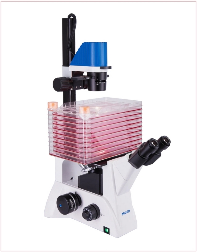 倒置顯微鏡的發明讓直接觀察培養皿里的細胞成為可能,然而隨著細胞培養的規模也越來越大,倒置顯微鏡直接觀察培養容器也遇到了越來越多挑戰,其極致就是多層細胞工廠培養皿,為此明美推出了細胞工廠顯微鏡,以便探索微觀世界的奧秘。