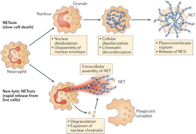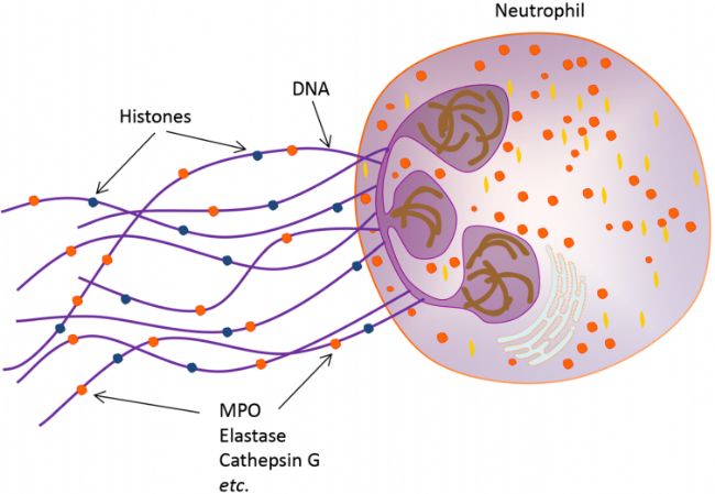 [2] Papayannopoulos V. Neutrophil extracellular traps in immunity and disease. Nat Rev Immunol. 2018 Feb. PMID: 28990587.