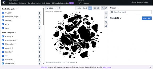 Human Brain Cell Atlas v1.0可以通過陳-扎克伯格計劃的CELLxGENE應用程序進行可視化和數據挖掘(圖3),其中包含: