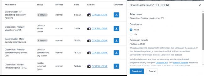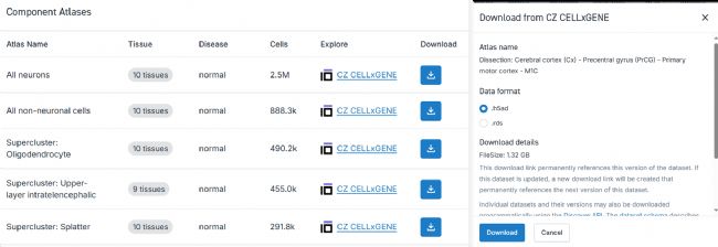 圖5 Human Cortical Cell Atlas v1.0數據及下載界面