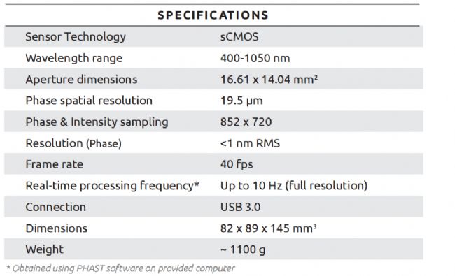 1.亞波長(zhǎng)空間尺度下的高精度測(cè)量:Phasics的波前傳感器不僅具備優(yōu)于2nm RMS的光程差測(cè)量精度,還采用了便捷的C端接口設(shè)計(jì),能夠直接連接顯微鏡,實(shí)現(xiàn)即插即用的快速安裝和亞波長(zhǎng)級(jí)別的空間分辨率。2.偏振無(wú)關(guān)性:Phasics的波前傳感器支持全面的偏振測(cè)量,能夠精確分析超表面在不同偏振狀態(tài)下的光學(xué)響應(yīng),從而更好地評(píng)估器件的實(shí)際性能。3.多光譜測(cè)量能力:其產(chǎn)品能夠在多個(gè)波長(zhǎng)范圍內(nèi)進(jìn)行高精度測(cè)量,確保超透鏡在多光譜應(yīng)用中的性能表現(xiàn)。4.環(huán)境穩(wěn)定性:Phasics的傳感器能夠在不穩(wěn)定的環(huán)境條件下保持精確測(cè)量,消除環(huán)境影響對(duì)測(cè)量結(jié)果干擾,確保數(shù)據(jù)可靠性。