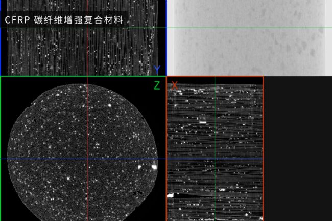 使用Neoscan N90 高分辨納米CT以 168nm 體素尺寸掃描CFRP 碳纖維增強復合材料,內部結構清晰可見