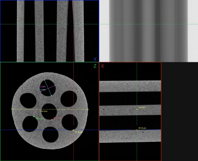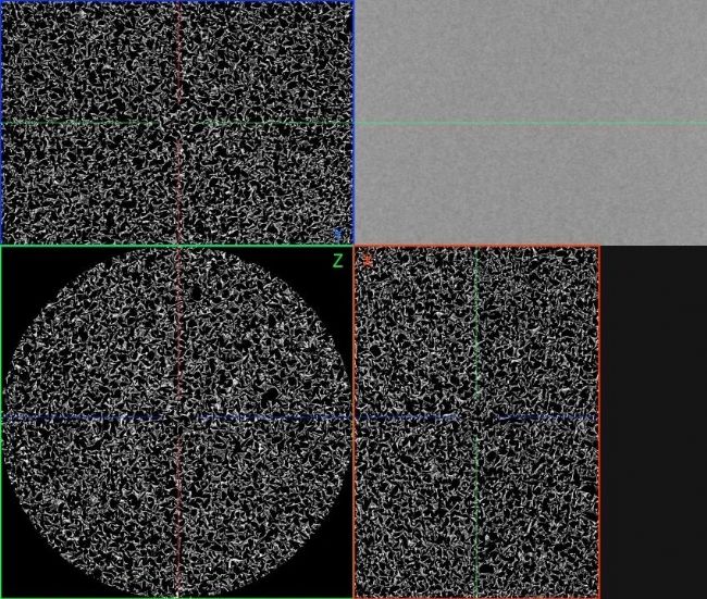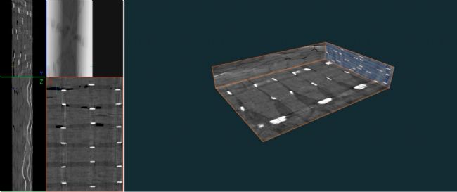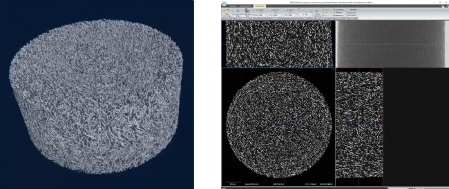 使用Neoscan 高分辨顯微CT以 860nm 像素大小掃描玻璃纖維增強復合材料,內部結構清晰可見