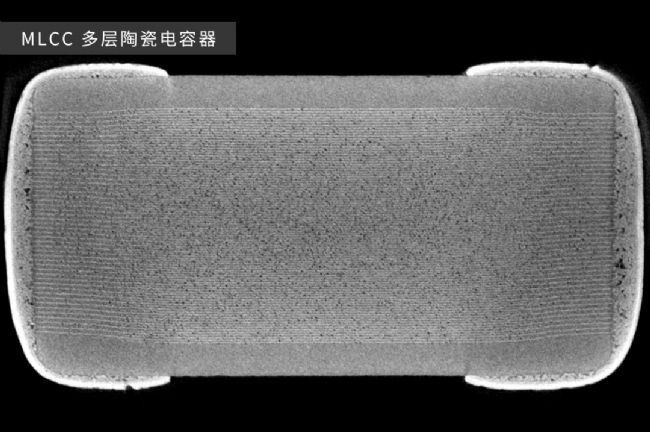 使用Neoscan N90 高分辨納米CT以 170nm 體素尺寸掃描MLCC 多層陶瓷電容器,無損揭示電容器內部結構、電極層和陶瓷介質層分布