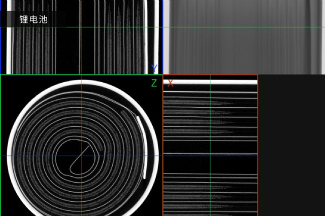 使用 Neoscan N90 高分辨納米CT 以 580nm 體素尺寸掃描鋰電池,內部結構得以清晰展示
