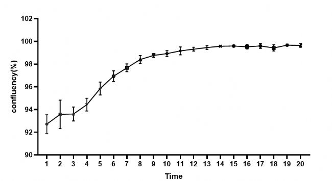 ®配套的分析軟件分析細(xì)胞融合度并制作生長曲線。