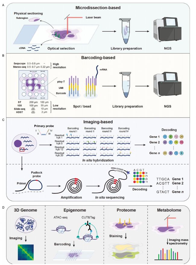 一般來說,基于成像的技術(shù)提供高空間分辨率,達(dá)到細(xì)胞甚至亞細(xì)胞水平。在這些技術(shù)中,基于ish的技術(shù)依賴于目標(biāo)基因的先驗(yàn)知識(shí),具有較高的檢測(cè)效率。相比之下,由于國(guó)際空間站的局限性,基于國(guó)際空間站的技術(shù)已經(jīng)效率相對(duì)較低,特別是在沒有目標(biāo)的情況下。此外,大多數(shù)這些技術(shù)都需要專門的高分辨率成像設(shè)備,這可能限制了它們更廣泛的適用性。
