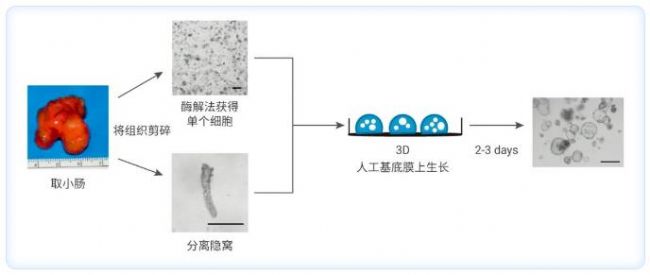 類器官可以從原代組織中產生,把原生組織切成小塊,再進一步分解消化成單個細胞, 并進行流式細胞分選以富集干細胞。類器官向所需的胚系進行定向分化,聚集產生浮動的球狀體,隨后被嵌入細胞外基質開始類器官培養。