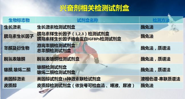 在運動醫學領域,除了興奮劑的檢測,保護運動員的身體使其不會在過度訓練的情況下造成不可逆的損傷更重要。皮質醇和睪酮的定量檢測對監測運動員運動強度,避免過度訓練造成運動員身體損傷有提示意義。科潤達生物推薦興奮劑和運動監測相關試劑盒明細如下: