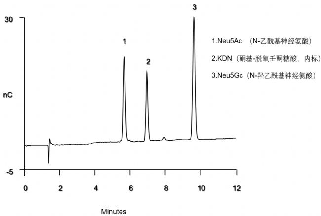圖4. 高效陰離子交換色譜-脈沖安培檢測法測定EPO中的唾液酸含量