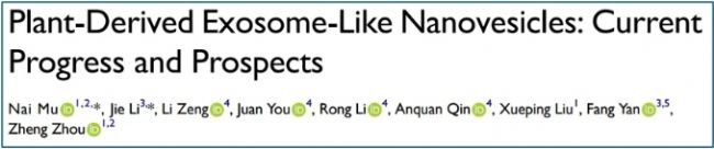 【1】Mu N, Li J, Zeng L. Plant-derived exosome-like nanovesicles: current progress and prospects. Int J Nanomedicine. 2023;18:4987–5009.